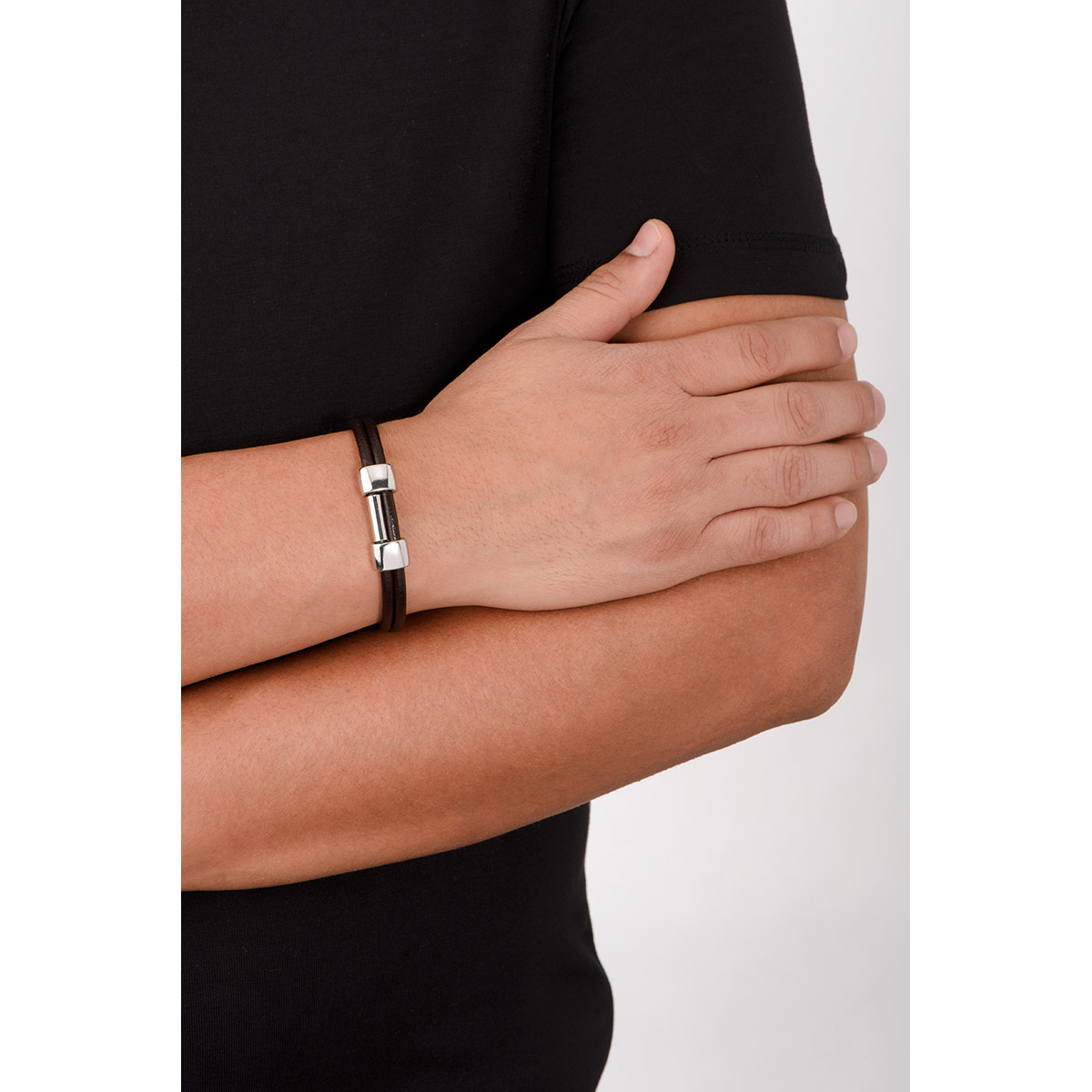 PULSERA DE 21 CM EN BAÑO DE BRONCE BLANCO Y CORDÓN COLOR CAFÉ