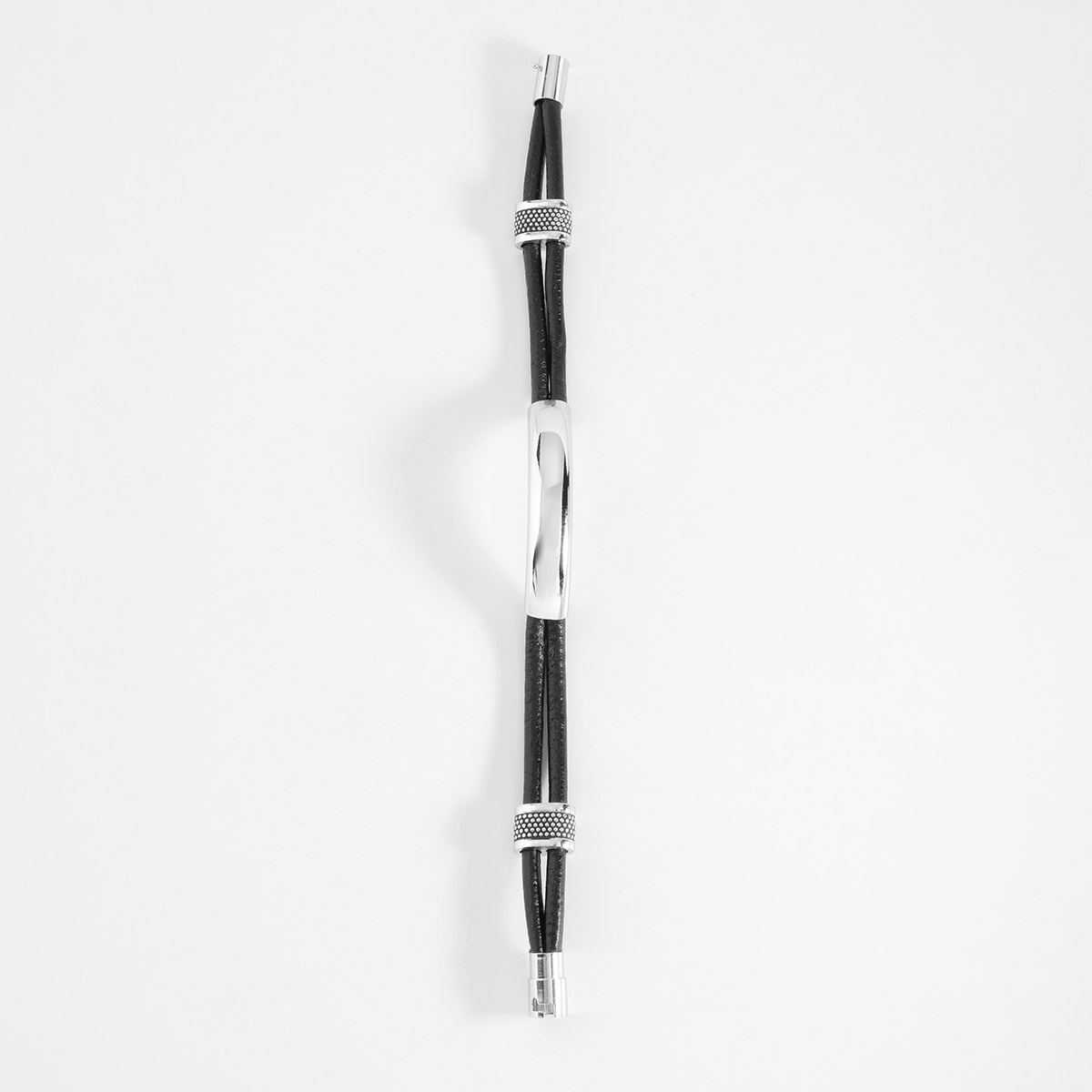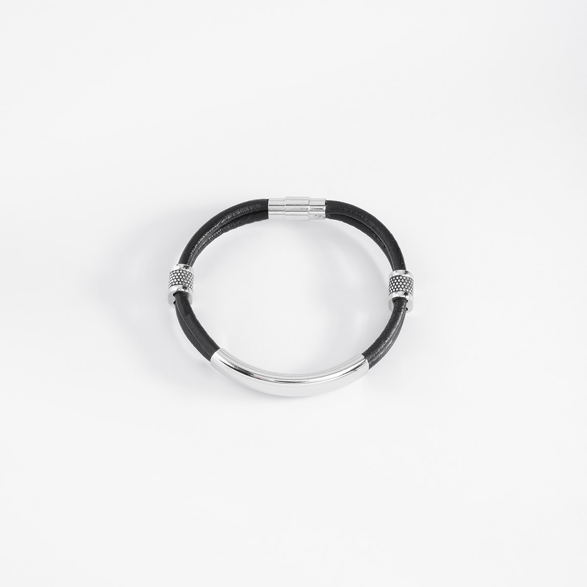 PULSERA DE 19 CM EN BAÑO DE BRONCE BLANCO Y CORDÓN COLOR NEGRO