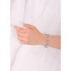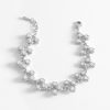 Hermosa pulsera en baño de platino con tiradas de dijes con piedras en tono cristal.