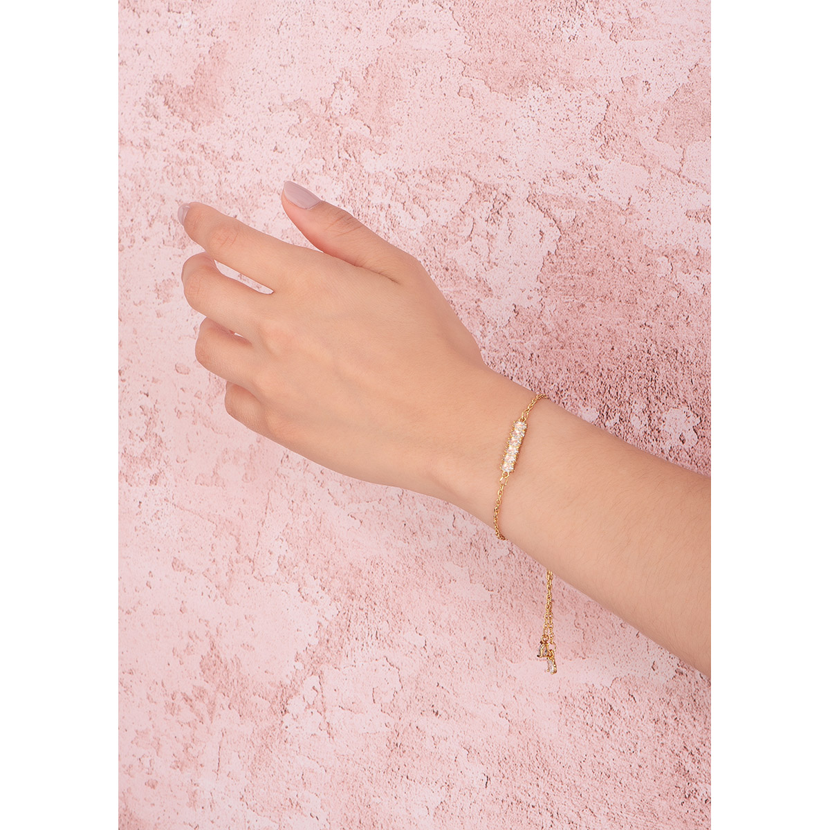 Pulsera ajustable, en baño de oro, con piedras Diamonice en tono cristal.