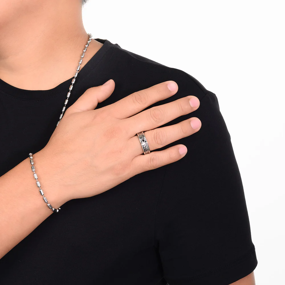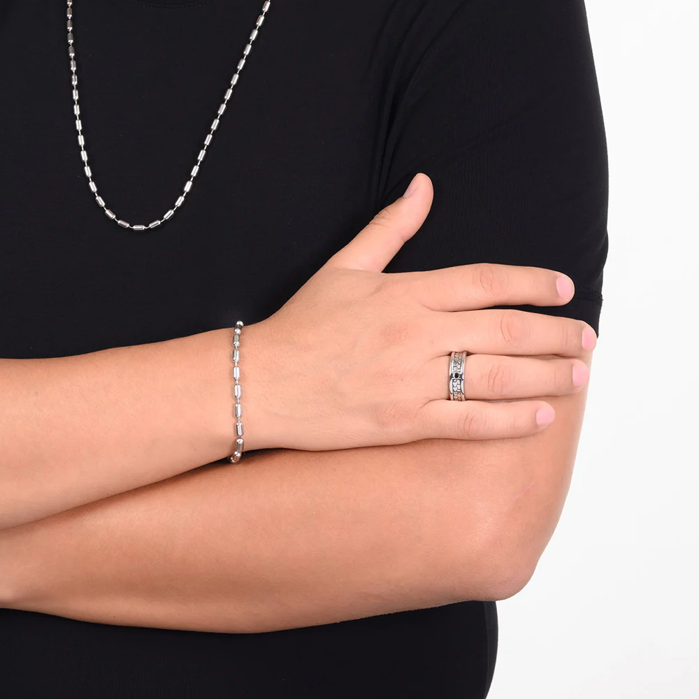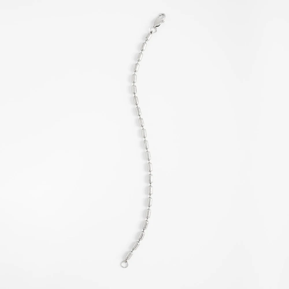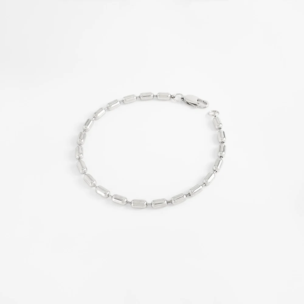 Descubre esta pulsera masculina de diseño moderno y versátil. Elaborada con eslabones rectangulares distintivos y un elegante baño de rodio, esta pieza añade un toque sofisticado a cualquier atuendo. Perfecta para el uso diario o para realzar tu estilo casual con un brillo sutil y duradero.