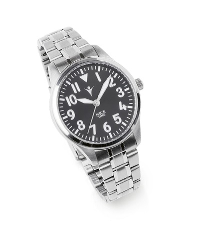 Reloj con correa de acero inoxidable, con carátula en tono platino, centro negro.