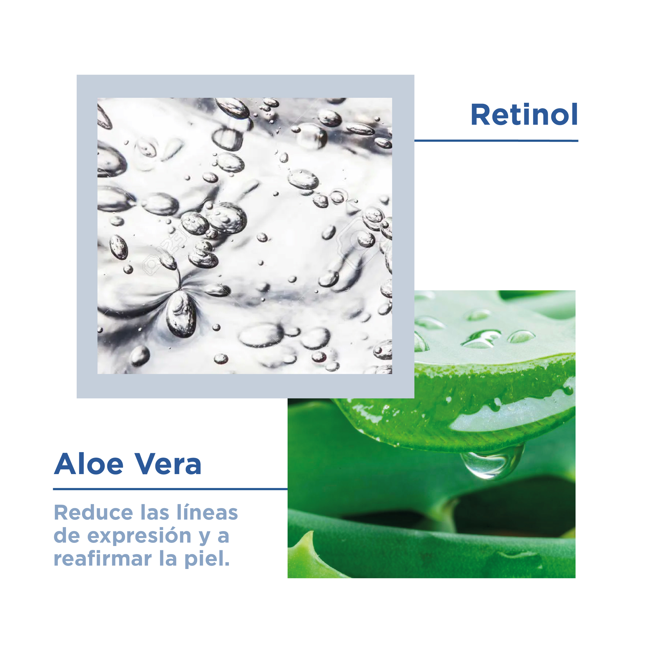 FÓRMULA ÚNICA QUE COMBINA LA TECNOLOGÍA DE LOS EXOSOMAS CON LAS PROPIEDADES DEL RETINOL PURO Y LA VITAMINA E. AYUDANDO A MEJORAR LOS SIGNOS VISIBLES DE LA EDAD AL IGUAL QUE LA FIRMEZA, TEXTURA Y TONO DE LA PIEL, MIENTRAS HIDRATA.